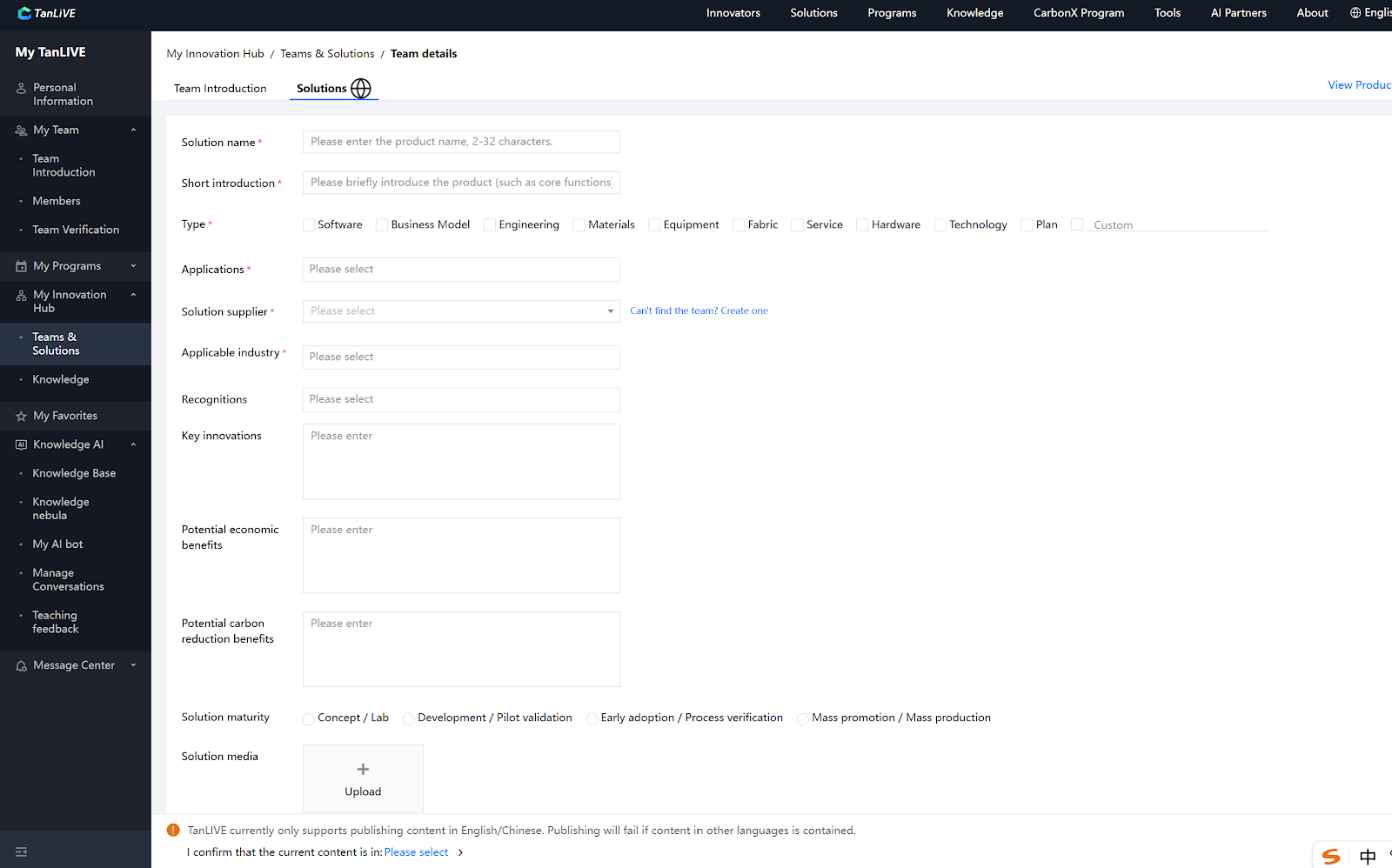 ℹ️ You are encouraged to fill in the “potential economic benefits” and “potential carbon reduction benefits” fields of the solution for a better matchmaking and spotlight on the CTS